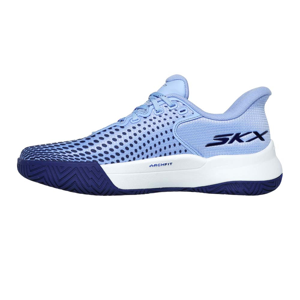 As you slip into the Skechers Viper Court Elite, the first impression is all about comfort and confidence on the court. The slip in design paired with the heel Comfort Pillow delivers a secure hold that helps stabilize your movements as you start your warm up.